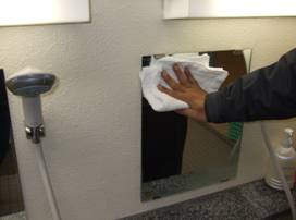 @ 壁面・カランのふちを水洗いする A 鏡の汚れを雑巾で拭き取る B 浴槽をデッキブラシで水洗いする C 床面をデッキブラシで水洗いする D おけと椅子を均等に分けて設置(片側6個ずつ) |